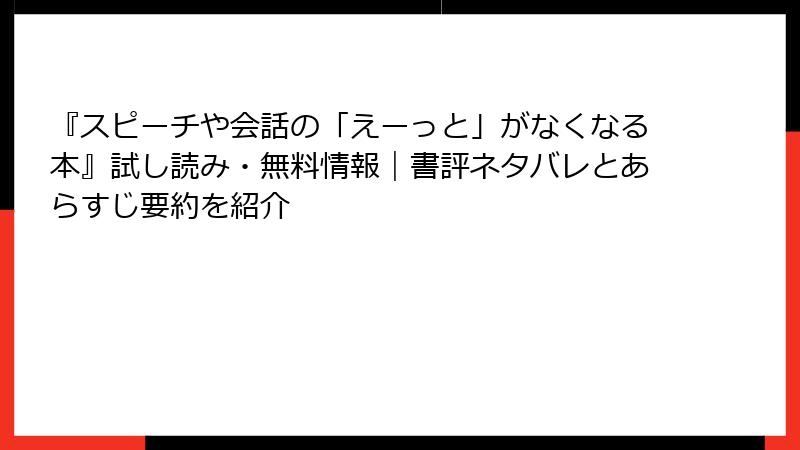 『スピーチや会話の「えーっと」がなくなる本』を無料で試し読み&中古でゲットする方法ガイド