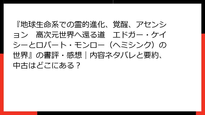 『地球生命系での霊的進化、覚醒、アセンション 高次元世界へ還る道 エドガー・ケイシーとロバート・モンロー(ヘミシンク)の世界』の書評・感想|内容ネタバレと要約、中古はどこにある?