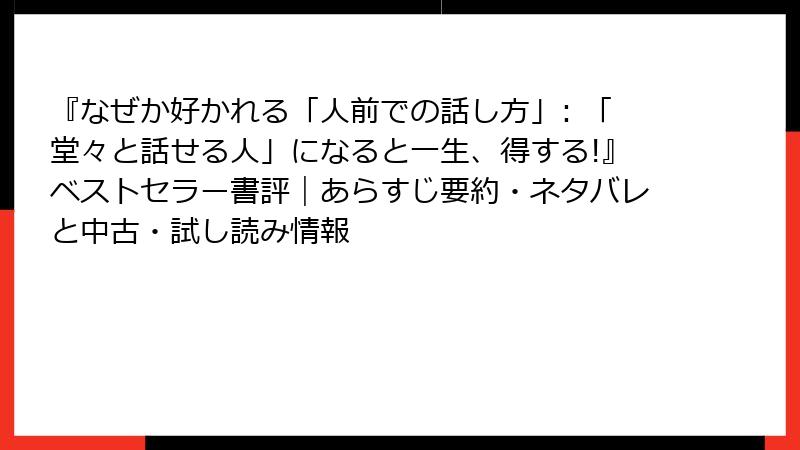 『なぜか好かれる「人前での話し方」: 「堂々と話せる人」になると一生、得する!』ベストセラー書評|あらすじ要約・ネタバレと中古・試し読み情報