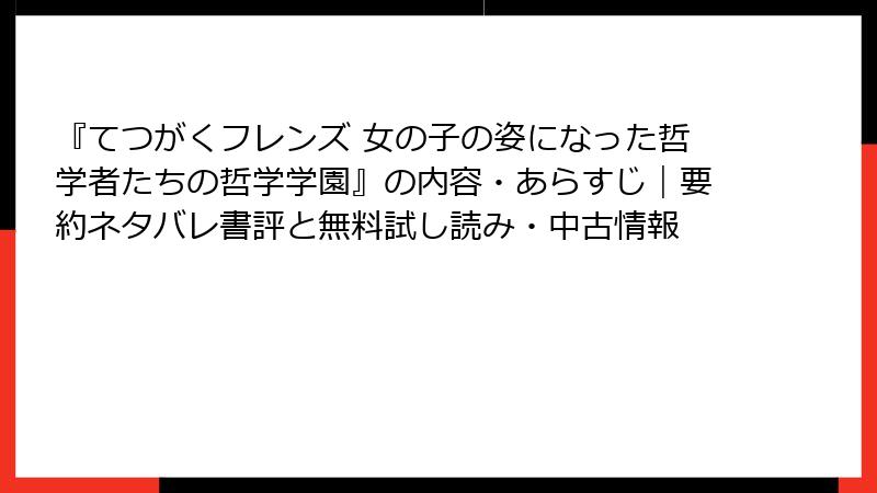 てつがくフレンズ 女の子の姿になった哲学者たちの哲学学園 ~無料試し読み&中古本ハント完全ガイド~