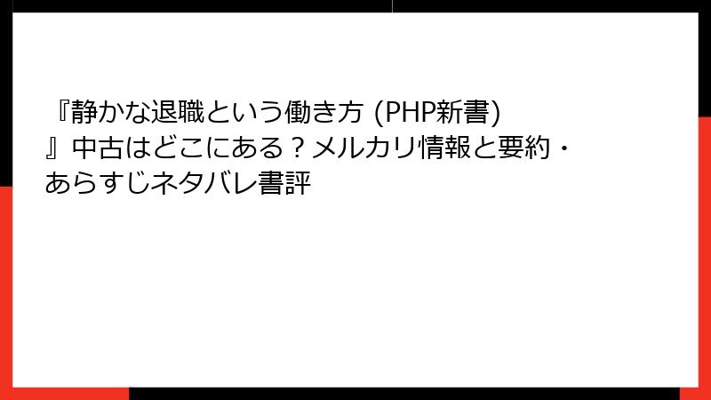 『静かな退職という働き方 (PHP新書)』中古はどこにある?メルカリ情報と要約・あらすじネタバレ書評