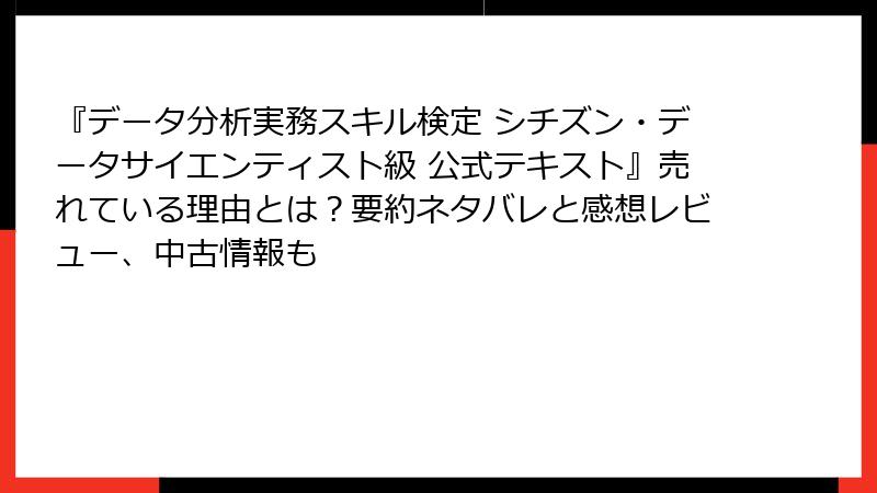 データ分析実務スキル検定 シチズン・データサイエンティスト級 公式テキスト:ユーザー声から見る本当の価値と課題