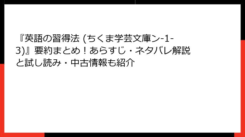 最所フミの名著『英語の習得法』が2025年に復刊されて以来、英語学習者の間で再燃するブーム。定価1,100円(税込)と手頃ながら、まずは中身をチラ見したいという声も多いはず。そんなあなたのために、Kindleをはじめとした無料試し読みの方法を徹底解説。さらに、中古市場の動向を掘り下げ、メルカリやヤフオクなどの具体例を交えてお買い得ルートを探ります。ネタバレなしで本質を掴み、賢く手に入れるためのブログ記事をお届け。英語上達への第一歩を、コストゼロから踏み出しましょう!