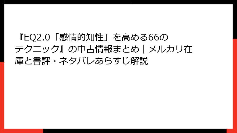 『EQ2.0「感情的知性」を高める66のテクニック』をお得に手に入れる! 無料試し読み&中古探しの完全ガイド