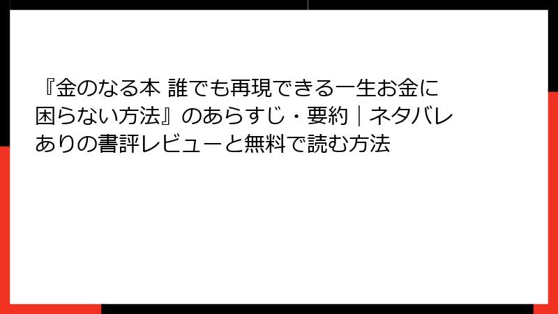 『金のなる本 誰でも再現できる一生お金に困らない方法』のあらすじ・要約|ネタバレありの書評レビューと無料で読む方法