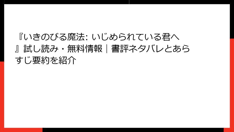 『いきのびる魔法: いじめられている君へ』試し読み・無料情報|書評ネタバレとあらすじ要約を紹介