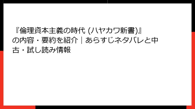 『倫理資本主義の時代』を無料試し読み&中古でお得に:2025年冬の入手ガイド