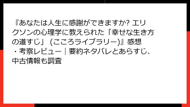 『あなたは人生に感謝ができますか? エリクソンの心理学に教えられた「幸せな生き方の道すじ」 (こころライブラリー)』感想・考察レビュー|要約ネタバレとあらすじ、中古情報も調査