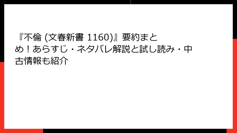 - 検索のコツ: アプリで「中野信子 不倫 文春新書」と入力。フィルターで「中古」「新書」「価格低→高」に絞り込み。2025年トレンドで、脳科学ブーム再燃中なので在庫回転早め。