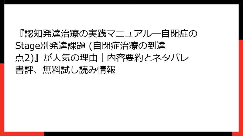 これらの感想から、書籍の強みは「理論から即実践へ」の橋渡し。レビューでは「TEACCHやABAとの違いが明確で、認知発達に特化している点が新鮮」との考察も見られ、長期的に療育の質を向上させるとの書評が散見されます。