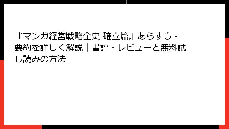 マンガ経営戦略全史 確立篇を無料でチラ見&中古でゲット:2025年冬の入手術徹底ガイド