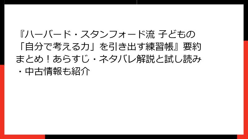 - ハーバード・スタンフォード流 子どもの「自分で考える力」を引き出す練習帳:無料試し読みと中古版入手ガイド