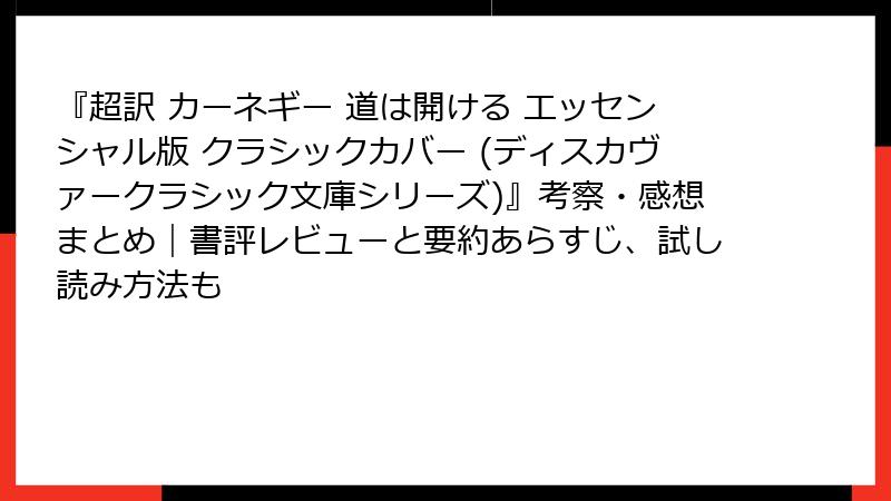 『超訳 カーネギー 道は開ける エッセンシャル版』:お試しからお得入手まで、心の道を低コストで開くガイド
