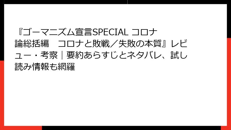 『ゴーマニズム宣言SPECIAL コロナ論総括編 コロナと敗戦/失敗の本質』レビュー・考察|要約あらすじとネタバレ、試し読み情報も網羅