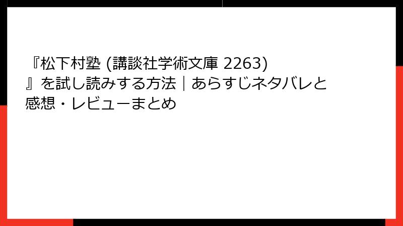『松下村塾』無料試し読み&中古入手ガイド:手軽に歴史の深みに触れるコツ