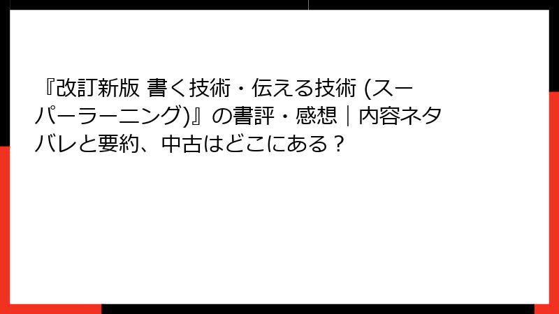 『改訂新版 書く技術・伝える技術 (スーパーラーニング)』の書評・感想|内容ネタバレと要約、中古はどこにある?