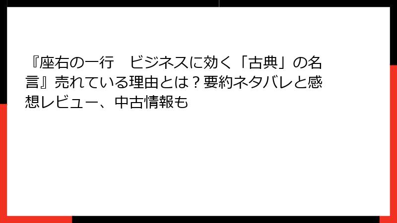 『座右の一行 ビジネスに効く「古典」の名言』売れている理由とは?要約ネタバレと感想レビュー、中古情報も