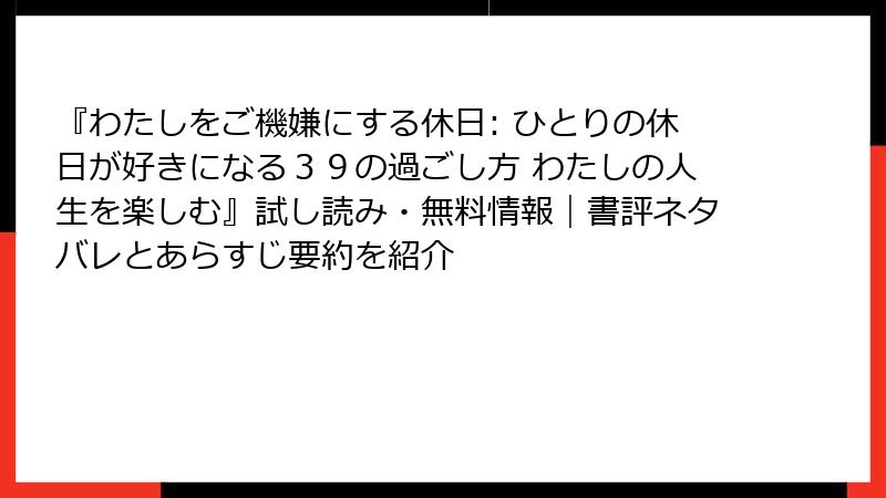 『わたしをご機嫌にする休日: ひとりの休日が好きになる39の過ごし方 わたしの人生を楽しむ』試し読み・無料情報|書評ネタバレとあらすじ要約を紹介