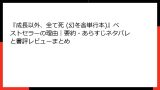 。Xでも「PRっぽい宣伝ポストが多いのが気になった」というメタ的な声はありましたが、本の内容自体への不満はゼロに近いです。