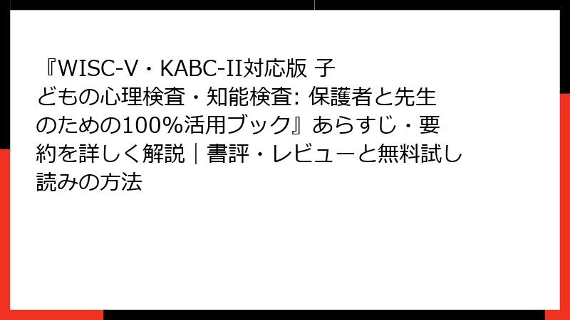 - 子どもの未来を支える一冊!『WISC-V・KABC-II対応版 子どもの心理検査・知能検査: 保護者と先生のための100%活用ブック』の詳細要約