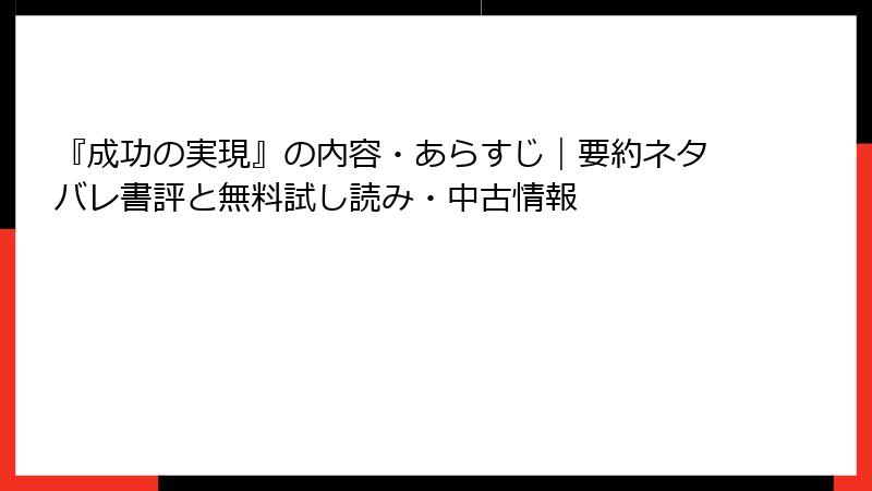 『成功の実現』の内容・あらすじ|要約ネタバレ書評と無料試し読み・中古情報