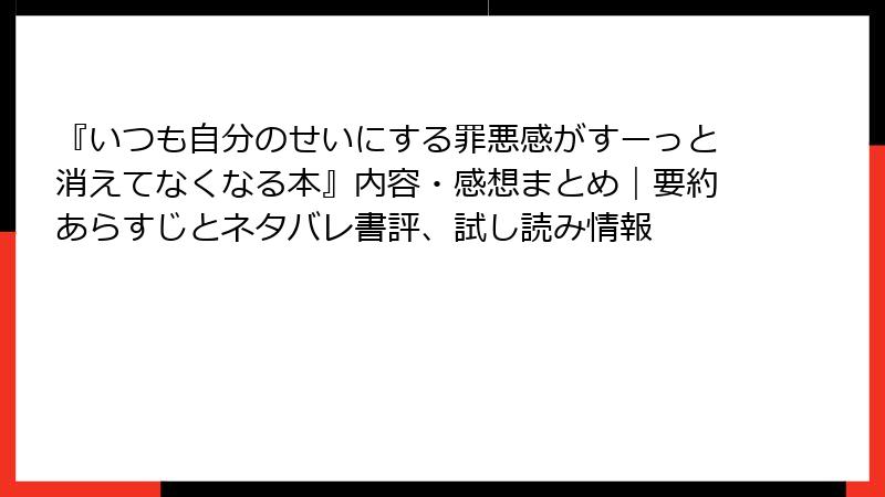 いつも自分のせいにする罪悪感がすーっと消えてなくなる本:レビューと書評の深掘り