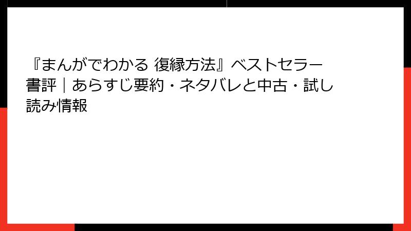 - 強み: マンガ主人公のストーリーが共感を呼び、読後感が良い。復縁を「セルフプロデュース」と再定義する視点が、自己成長本としても機能。