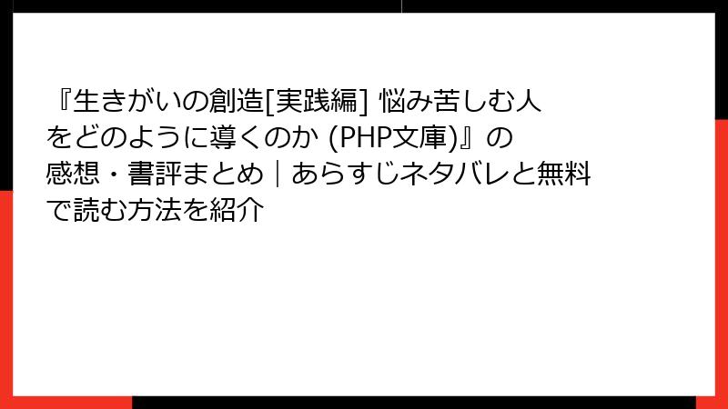 『生きがいの創造[実践編] 悩み苦しむ人をどのように導くのか (PHP文庫)』の感想・書評まとめ|あらすじネタバレと無料で読む方法を紹介
