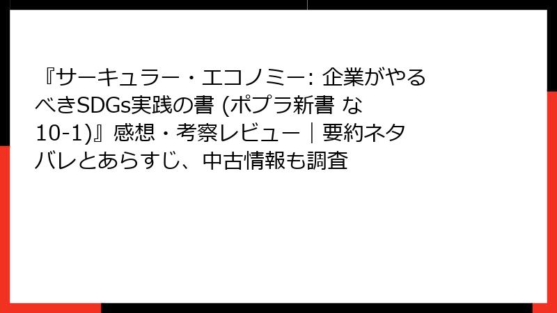 - アクセシビリティの微妙な壁: 「難しい」という直接批判はないものの、SDGs未経験者から「用語の前提知識が必要かも」とのつぶやき。サーキュラー原則の説明が早いペースで、序章でつまずく読者が少数派ながら存在。