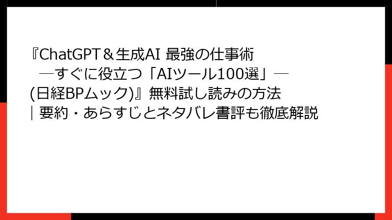 『ChatGPT&生成AI 最強の仕事術 ―すぐに役立つ「AIツール100選」― (日経BPムック)』無料試し読みの方法|要約・あらすじとネタバレ書評も徹底解説