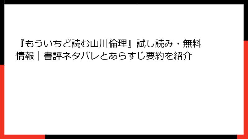 • その他のプラットフォーム:楽天KoboやGoogle Booksでは、原書の試し読みが限定的ですが、検索で「山川倫理」関連のサンプルが出てくる場合あり。Kindle Unlimitedの無料トライアル(30日間)で全文読み放題のチャンスも狙えますが、対象外の場合が多いので事前確認を。