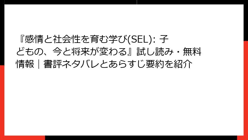 感情と社会性を育む学び(SEL): 子どもの、今と将来が変わる ― 詳細なあらすじと要約