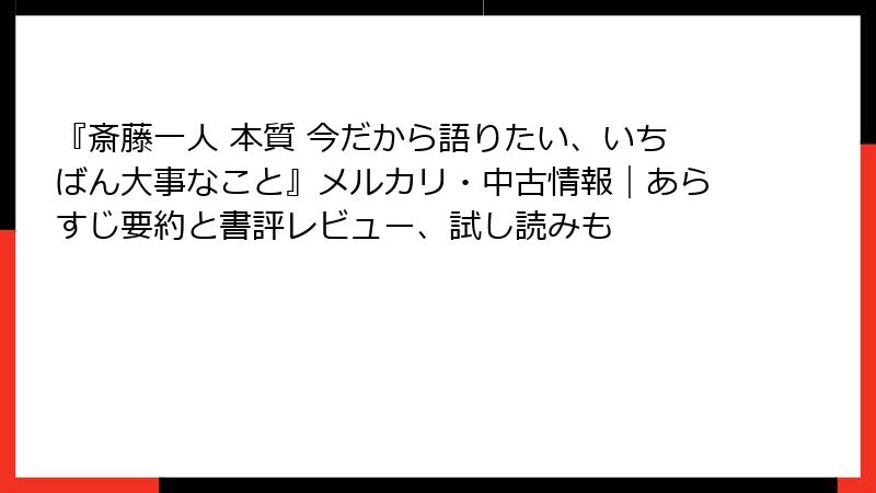 『斎藤一人 本質 今だから語りたい、いちばん大事なこと』メルカリ・中古情報|あらすじ要約と書評レビュー、試し読みも