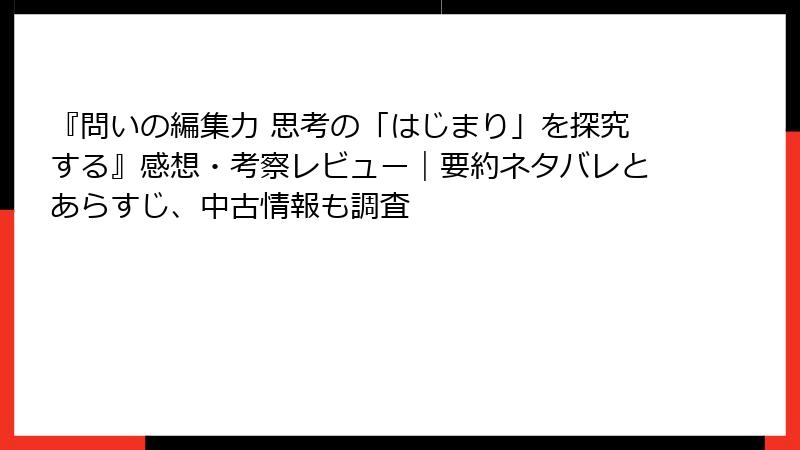 『問いの編集力 思考の「はじまり」を探究する』感想・考察レビュー|要約ネタバレとあらすじ、中古情報も調査