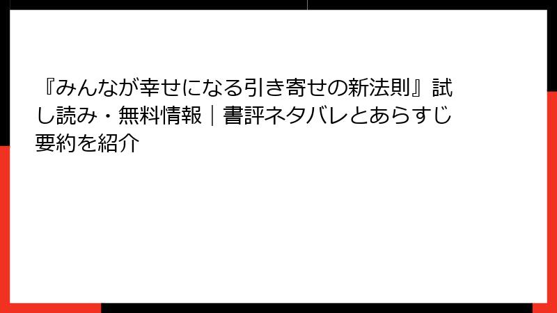 1. みんなが幸せになる引き寄せの新法則 – 詳細あらすじと要約