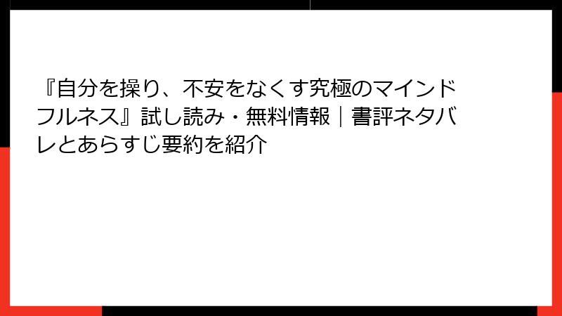 『自分を操り、不安をなくす究極のマインドフルネス』試し読み・無料情報|書評ネタバレとあらすじ要約を紹介