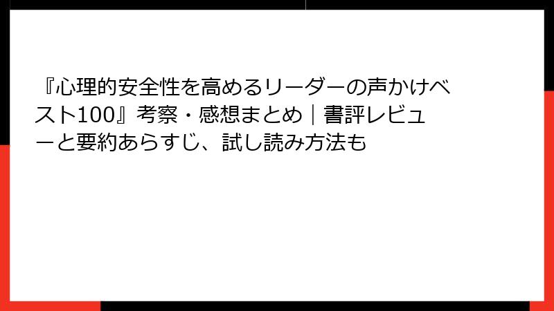 『心理的安全性を高めるリーダーの声かけベスト100』考察・感想まとめ|書評レビューと要約あらすじ、試し読み方法も