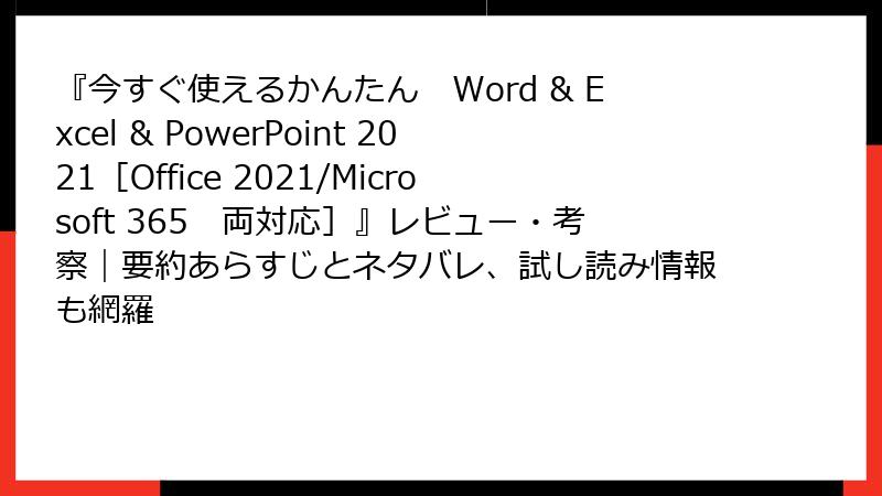 - 今すぐ使えるかんたん Word & Excel & PowerPoint 2021のレビュー総まとめ:初心者歓喜のガイドブックか、それとも物足りない? ユーザー声から読み解く実力