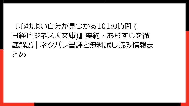 - 圧倒されるボリューム: 「質問が多すぎて途中で挫折。選んで読むと効果的だが、初心者は戸惑うかも」(Bookmeterユーザー)。101問の網羅性が、逆に負担に感じる声。解決策として「テーマ別ピックアップ」を提案する読者も。
