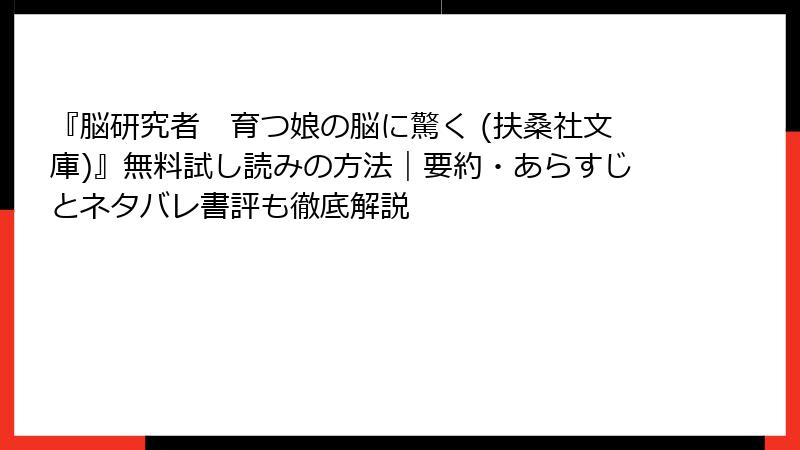 『脳研究者 育つ娘の脳に驚く (扶桑社文庫)』無料試し読みの方法|要約・あらすじとネタバレ書評も徹底解説