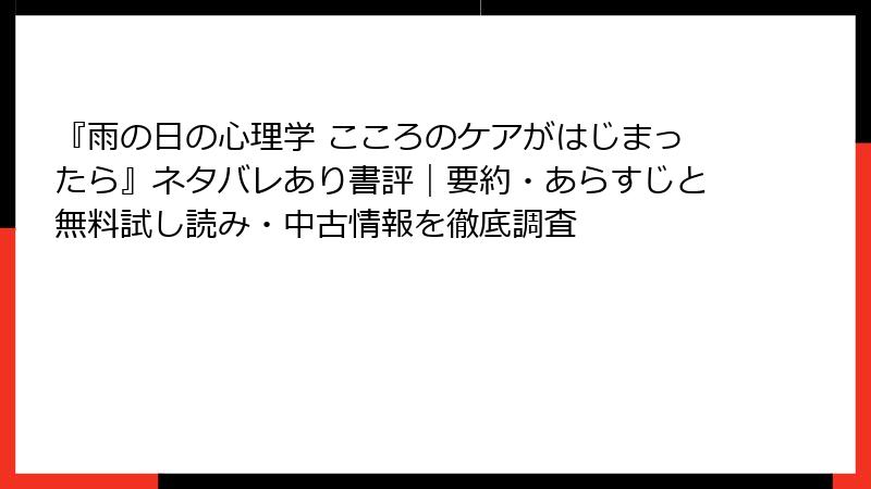『雨の日の心理学 こころのケアがはじまったら』ネタバレあり書評|要約・あらすじと無料試し読み・中古情報を徹底調査