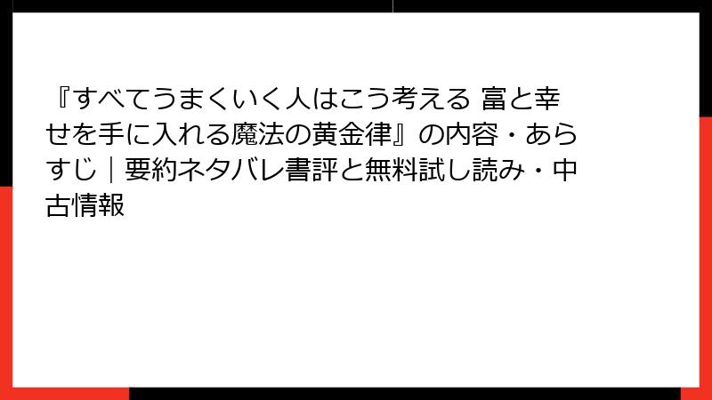 すべてうまくいく人はこう考える:富と幸せを手に入れる魔法の黄金律の詳細なあらすじと要約