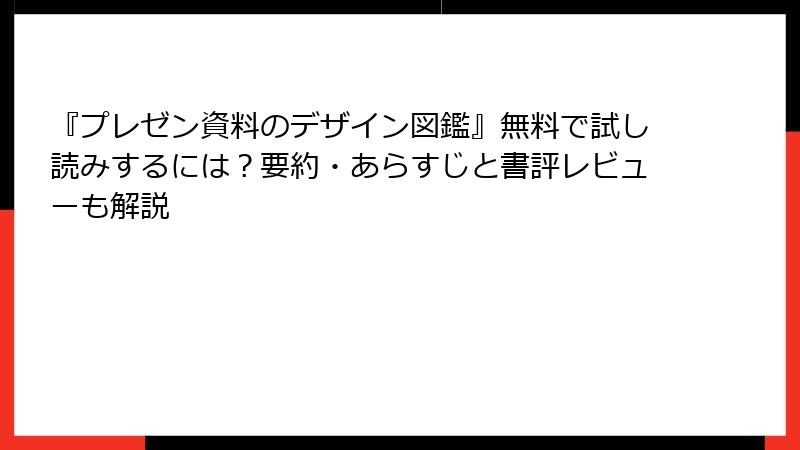 『プレゼン資料のデザイン図鑑』無料で試し読みするには?要約・あらすじと書評レビューも解説