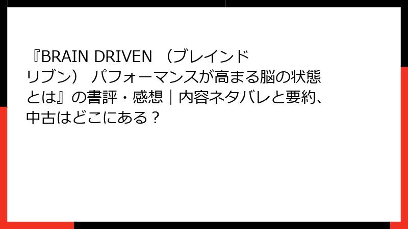 『BRAIN DRIVEN (ブレインドリブン) パフォーマンスが高まる脳の状態とは』の書評・感想|内容ネタバレと要約、中古はどこにある?