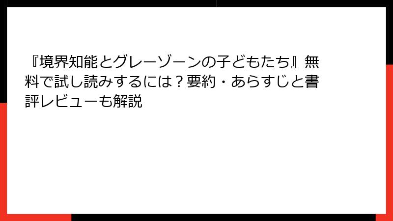 『境界知能とグレーゾーンの子どもたち』を無料で試し読み&中古本探しガイド:お得に手に入れるコツ