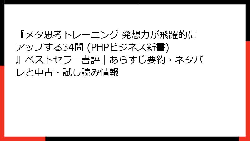お手軽にメタ思考を体感!『メタ思考トレーニング』の無料試し読み&中古版入手ガイド