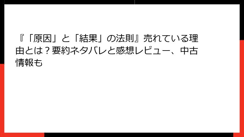 『「原因」と「結果」の法則』売れている理由とは?要約ネタバレと感想レビュー、中古情報も