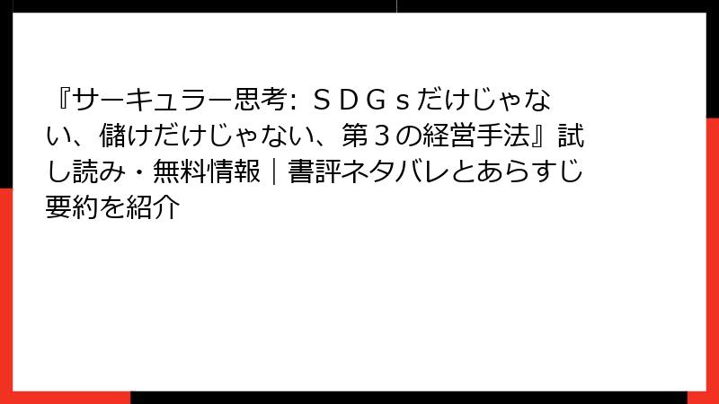 『サーキュラー思考: SDGsだけじゃない、儲けだけじゃない、第3の経営手法』試し読み・無料情報|書評ネタバレとあらすじ要約を紹介