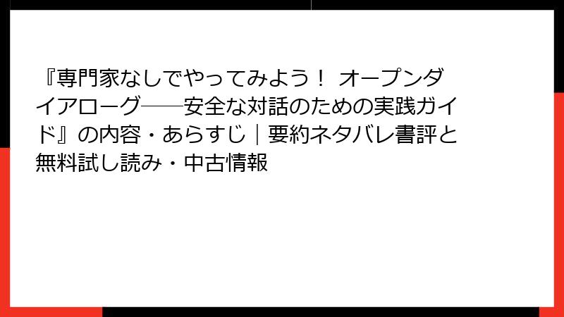 『専門家なしでやってみよう! オープンダイアローグ──安全な対話のための実践ガイド』の内容・あらすじ|要約ネタバレ書評と無料試し読み・中古情報