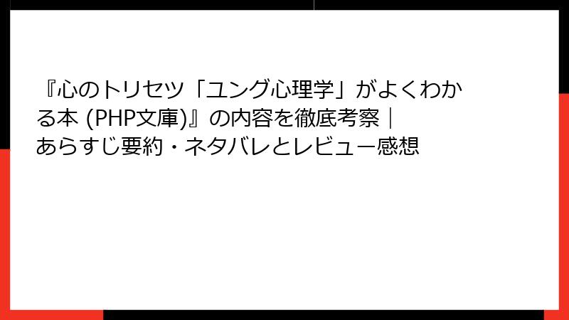 - 想定シーン: 通勤電車でサクッと読み、職場での人間関係をユング視点で振り返る。